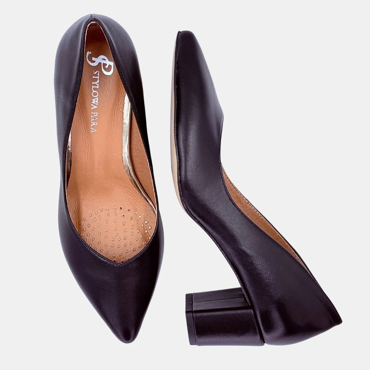 Klasyczne czółenka Stylowa Para w kolorze czarnym to ponadczasowy model, który doskonale łączy szyk z wygodą. Wykonane z naturalnej skóry licowej, zapewniają perfekcyjne dopasowanie i komfort przez cały dzień. Obcas typu słupek o wysokości 5,5 cm gwarantuje stabilność, a miękka wkładka dba o wygodę stóp – nawet podczas intensywnego dnia w pracy czy eleganckiego wieczoru.