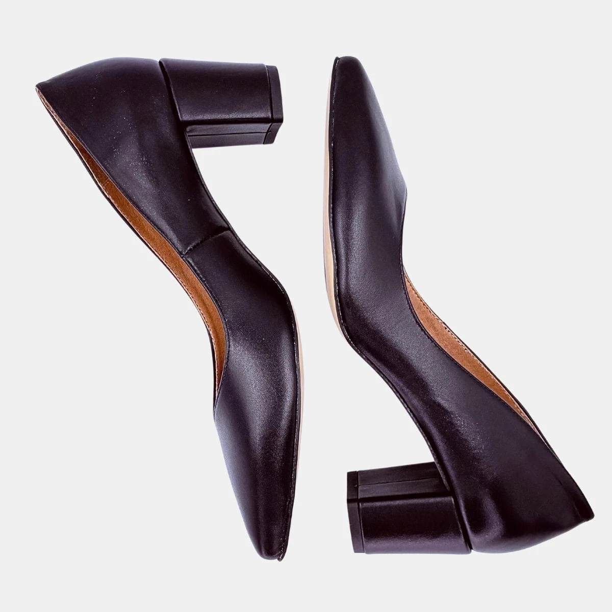 Eleganckie czółenka ze skóry naturalnej z obcasem typu słupek 5,5 cm. Idealne do biura i na wieczorne wyjścia – wygoda i styl w jednym.
