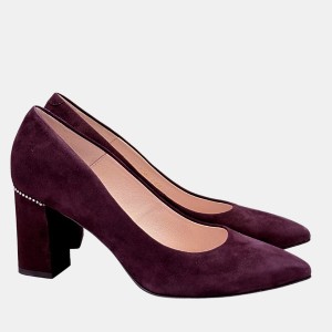 Bordowe czółenka zamszowe na słupku 7,5 cm – BRAVO MODA