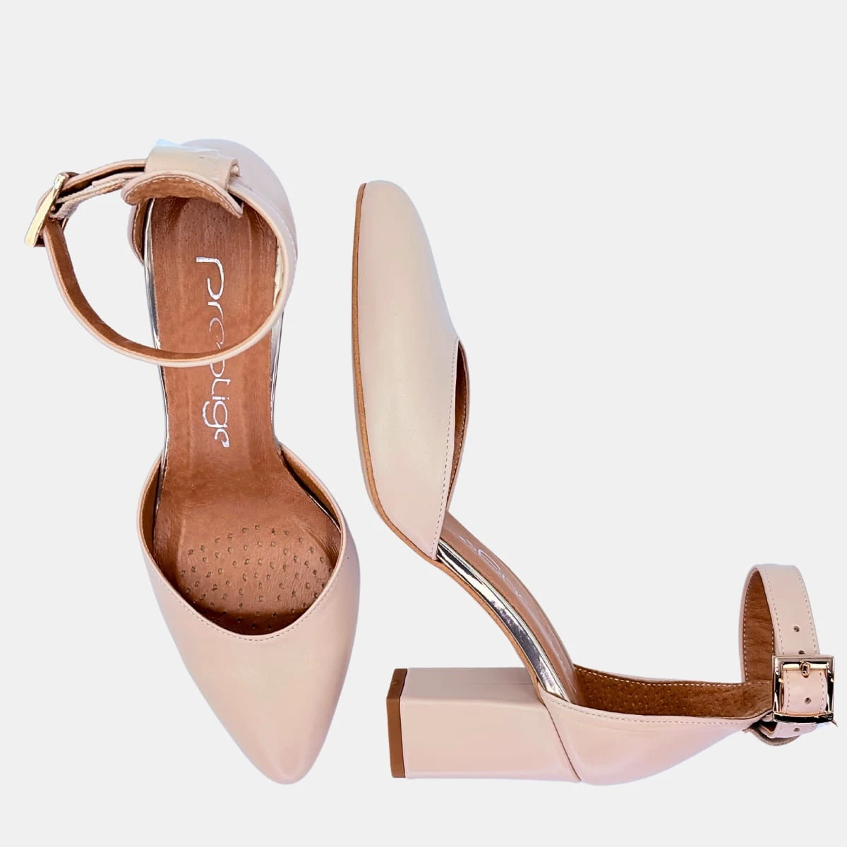 Beżowe czółenka na słupku 7 cm ze skóry naturalnej | PRESTIGE – eleganckie buty damskie