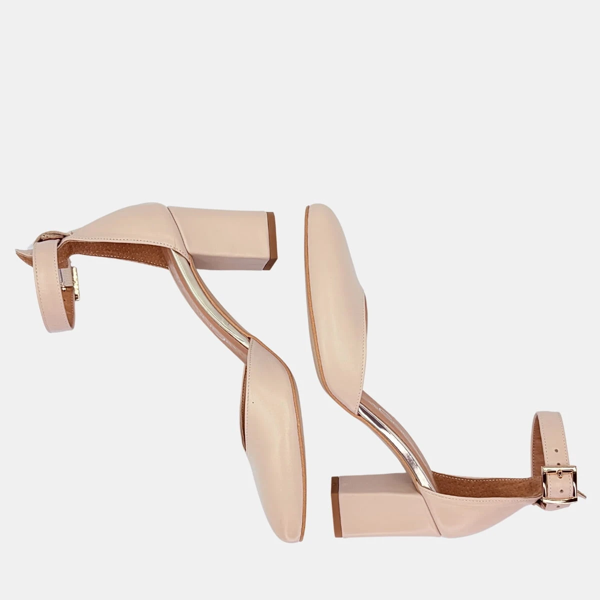 Stabilny, średni obcas typu słupek gwarantuje komfort noszenia przez cały dzień, a pasek wokół kostki dodaje uroku i zapewnia odpowiednie trzymanie stopy. Migdałowy nosek nadaje sylwetce lekkości i wysmukla nogę, tworząc ponadczasowy fason pasujący do różnych stylizacji.
