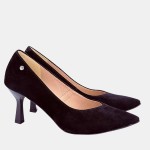 Szpilki damskie czarne zamszowe z wcięciem w serek – STYLOWA PARA