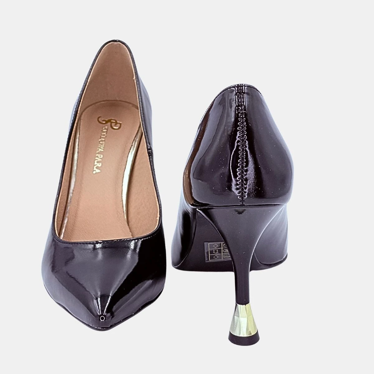 Czarne lakierowane czółenka ze złotym akcentem – Stylowa Para
