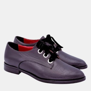 Model wyróżniają aksamitne tasiemki zamiast tradycyjnych sznurówek, które nadają całości subtelnej elegancji. Obcas 2,5 cm zapewnia wygodę noszenia na co dzień, a migdałowy nosek podkreśla kobiecy styl.