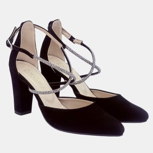 Eleganckie czółenka czarne zamszowe z paskami cyrkoniowymi, na słupku 9 zm Zan Zara