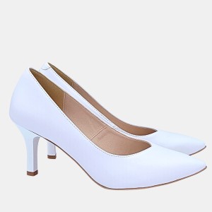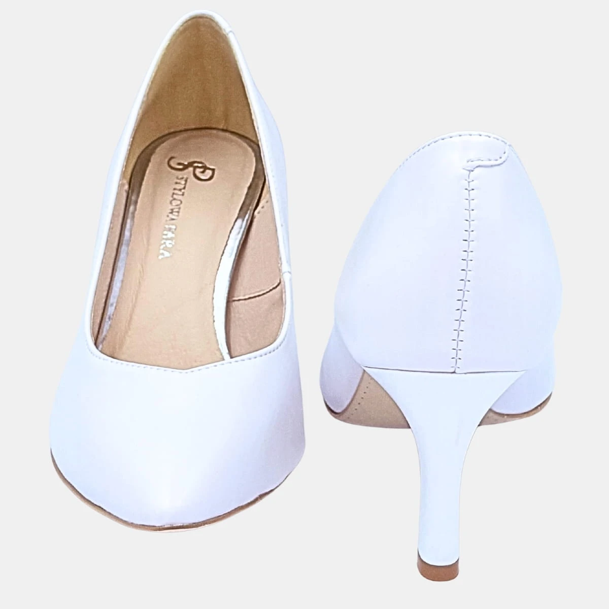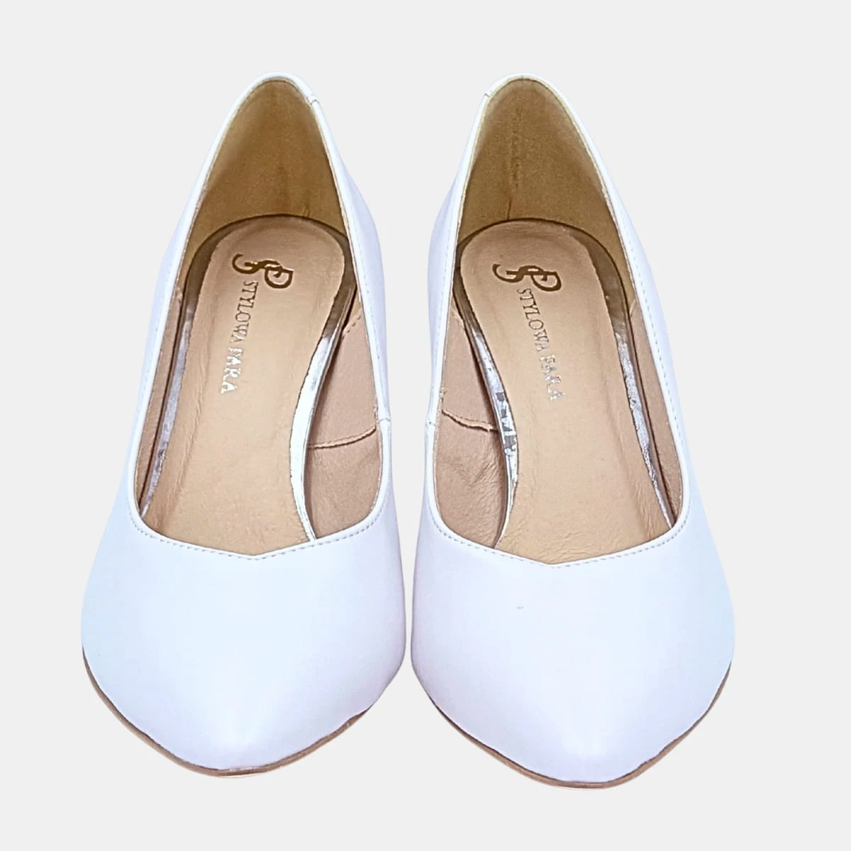 Białe ślubne szpilki STYLOWA PARA z 7,5 cm obcasem i skórzaną wkładką to klasyka w eleganckim wydaniu. Wygodne, stylowe i idealne na wielki dzień – dodaj do koszyka i olśnij wszystkich już dziś!