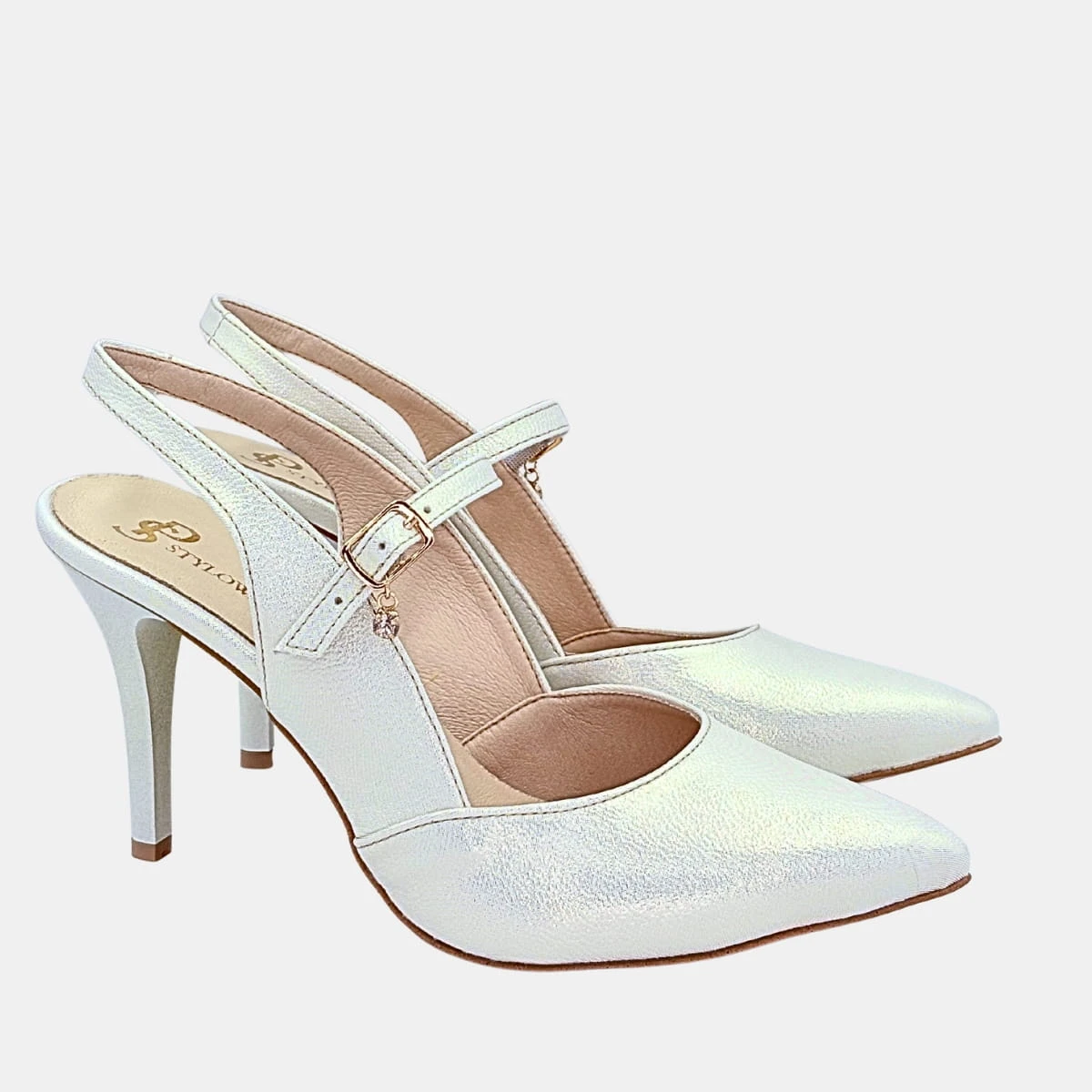 Dodaj blasku swoim stylizacjom dzięki szpilkom STYLOWA PARA w jasnozłotym odcieniu z perłowym połyskiem. Te wyjątkowe buty to esencja kobiecej elegancji i wygody – stworzone z myślą o pewnych siebie kobietach, które kochają wyróżniać się z tłumu.
