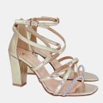 Złote sandały STYLOWA PARA z cyrkoniami i obcasem klocek 8,5 cm to połączenie blasku, elegancji i komfortu. Idealne na wesele, bal czy uroczyste przyjęcie – dodadzą szyku każdej stylizacji.