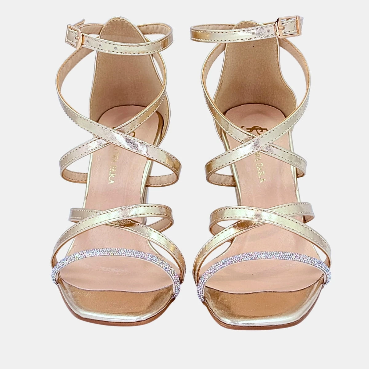 Złote eleganckie sandały damskie z cyrkoniami – STYLOWA PARA